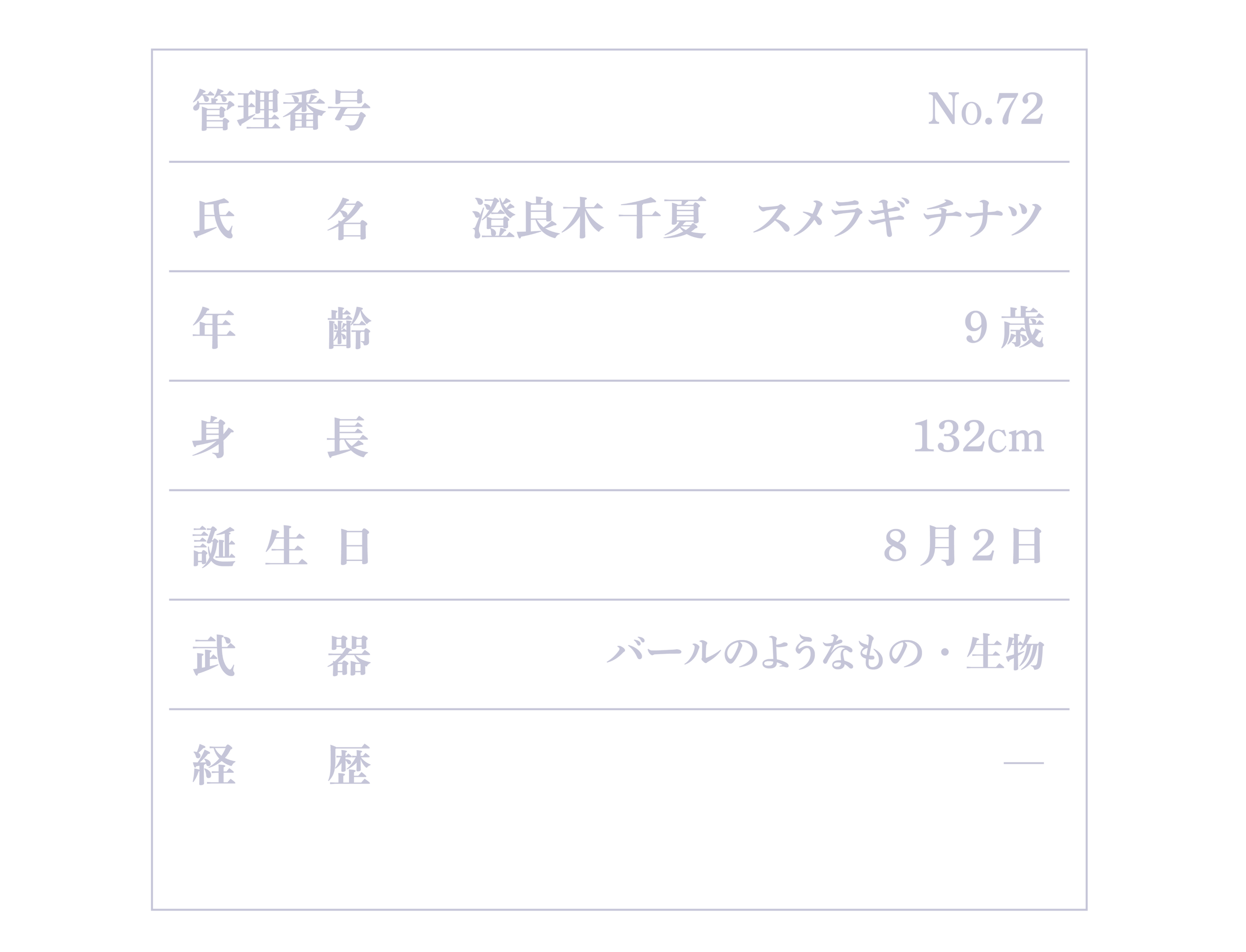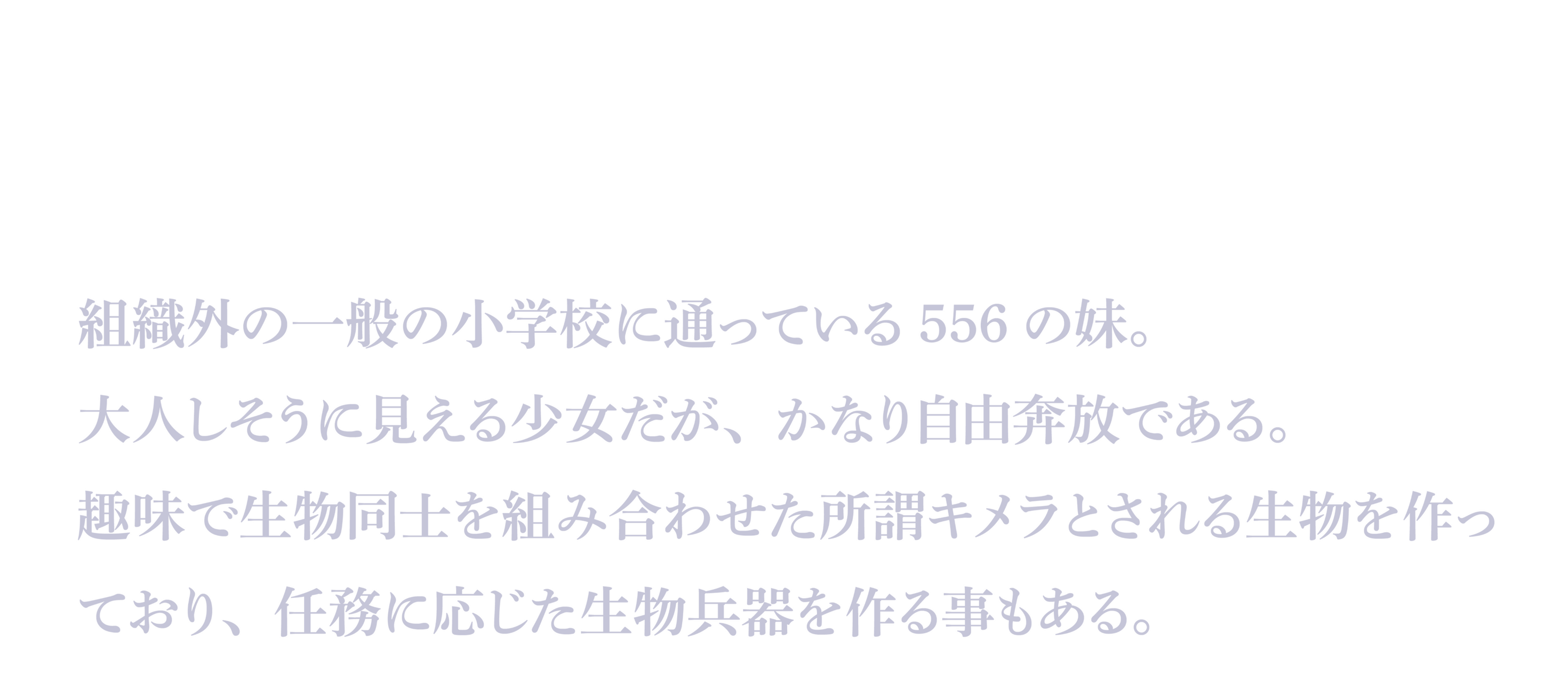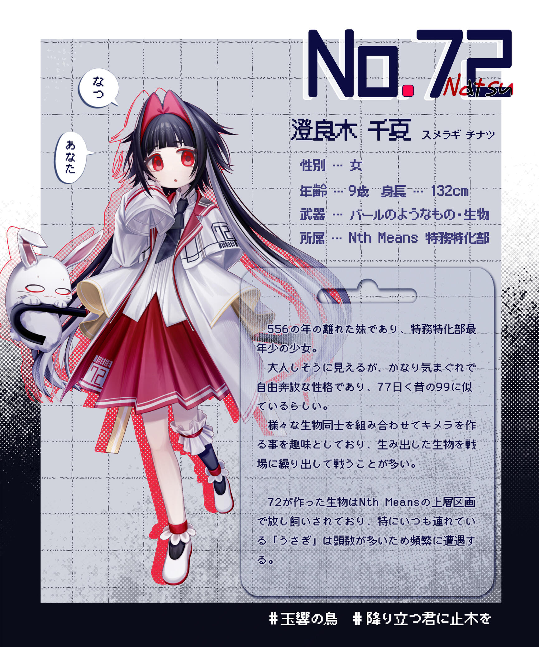 「きけんなお仕事ばっかりしてる人ごろしのおにーちゃん。たぶんやさしい人?なつはすき。でも、うさぎはきらいみたい…。どうして?」